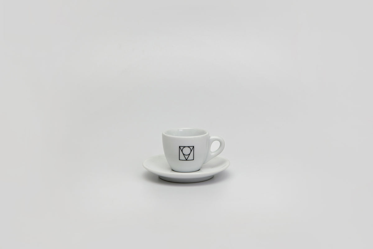 Our signature porcelain espresso cup by Italian craftsman Ancap, printed with our monogram; 60ml cup + saucer.